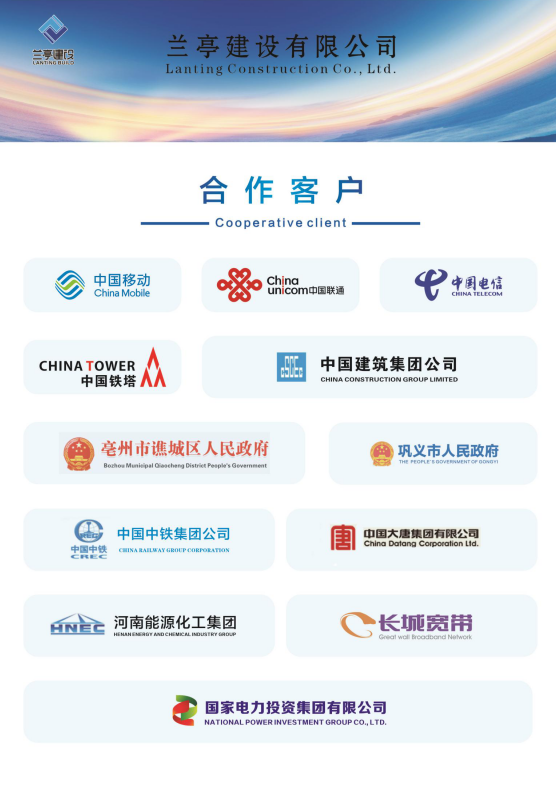 兰亭建设有限公司合作过得多家大型企业以及企业获得的各项资质证书。(见上图)