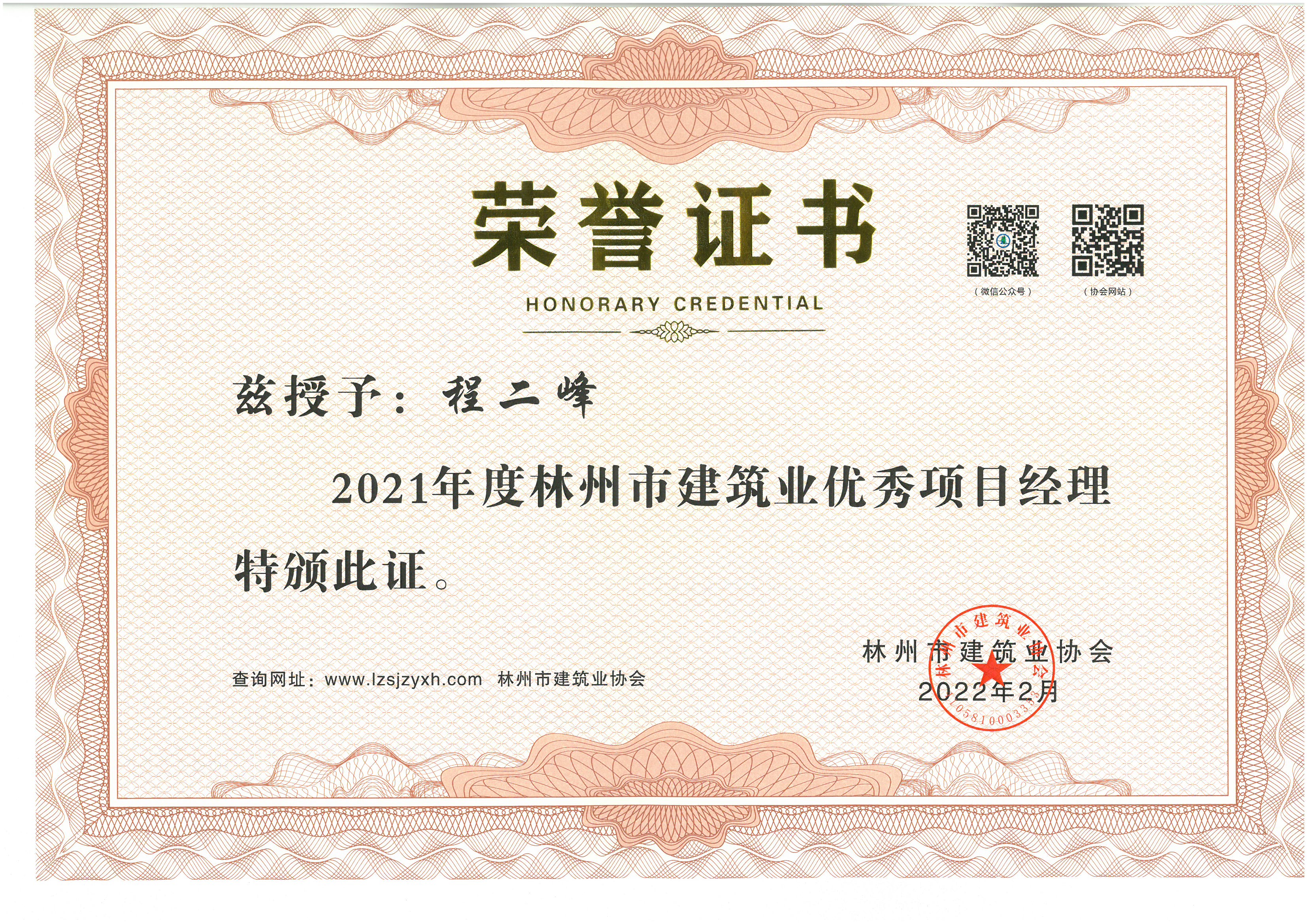 程二峰同志解放思想,勇于担当和创新。自团队组建以来,管理人员均严格执行国家、省、市以及公司相关规范、制度的要求。以公司工程部、经营部、财务部等各部门的要求为基本指导纲领,大胆创新、突出重点、推进项目商务策划、项目优质工程建设实施规划等工作,过程中以各项规划为基础带队组织施工。身先示范、砥砺前行,在本管理方面以公司经营部的具体要求为基础,先后通过项目设计变更、参数修改等方式,增加项目实际利润,使得项目在成本测算、项目利润考核方面产生较好的效果。在经历了钢材、商砼等主要材料大幅涨价的市场环境下,项目仍确保了一定的利润。不忘初心、自开工建设至竣工验收,一直秉承诚信为本、开拓发展、德行合一、建筑未来的理念及做法,取得了建设方的高度认可,为今后的合作奠定了良好的基础。